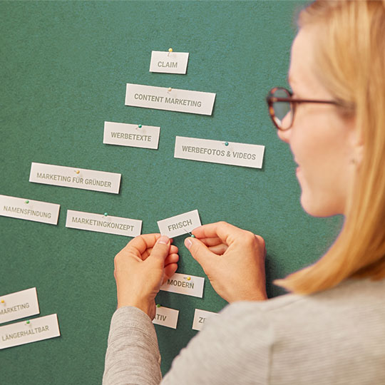 Eine Ansprechpartnerin, viele Möglichkeiten. Mithilfe meines Expertennetzwerks aus Werbefotografen, Online-Spezialisten, Druckprofis, Filmemachern und Co. ist es mir möglich, ganzheitliches und qualitativ hochwertiges Marketing anzubieten. Wichtig für dich: eine Ansprechpartnerin, die sowohl die Marke, das Unternehmen und die Personen dahinter kennt und versteht. Somit können alle Maßnahmen - entsprechend aufeinander abgestimmt - umgesetzt werden.